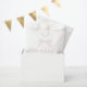 Say merci beaucoup in style with this elegant French-inspired baby shower favour bag. Featuring soft blush tones, a pink bow and graceful script, this design pairs perfectly with any Parisian or coquette-themed celebration.