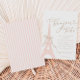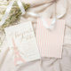 Say bonjour bébé with this chic and elegant Paris-themed baby shower invitation. Designed with soft blush tones, a dainty Eiffel Tower illustration tied with a bow, and modern script typography, this invite is perfect for celebrating a baby girl in Parisian style. The back features classic blush and cream stripes, giving it a polished, boutique feel with a coquette edge.