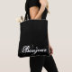 Make a fun fashion statement with this classy black and white Bonjour tote bag!