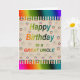 BONJOUR D'ANNIVERSAIRE Grande Carte Oncle. Une carte arc-en-ciel très colorée avec un arrière - plan réputé. À l'intérieur de la carte dit AVEZ UNE JOURNÉE INCROYABLE.