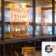 Bonjour | French Hello in Brown Groovy Typography Window Cling