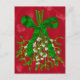 "Bonjour Mistletoe." Postcard est un tableau Photoshop de Mistletoe enveloppé d'un ruban vert sur un arrière - plan rouge. J'espère que vous en apprécierez.