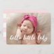 Annoncez la naissance de votre petite fille avec un magnifique faire-part de naissance photo "Hello Little Lady". La faire-part de naissance élégante comporte une superposition avec les mots "Hello Little Lady" dans une police de script de brosse, des espaces réservés pour une photo et du texte personnalisé, et un motif rayé rose et blanc roux au dos de la carte. Modifiez la couleur arrière - plan en une couleur personnalisée à l'aide de l'outil "Personnaliser".