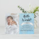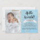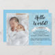 Tout simplement magnifique la Faire-part Bébé parfaite à envoyer à tous vos amis et famille annonçant la naissance de votre enfant. Avec une photo sur le devant avec une carte du monde bleu bébé, une bannière en soie blanche, un arrière - plan bleu clair avec toutes les informations sur le bébé.