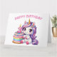 Bonne 3e carte d'anniversaire. Trois ans. Cute Unicorn aux couleurs rose et lilas. Un gâteau d'anniversaire avec une bougie numéro deux. Une adorable carte d’anniversaire pour enfant. Cette carte est vide à l'intérieur pour votre propre message. Également disponible en téléchargement numérique pour transfert vers d'autres produits.