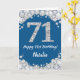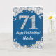 Joyeuse 71e Anniversaire Carte Parties scintillant bleue et argent avec nom personnalisé. Pour plus de personnalisation, cliquez sur le bouton "Customiser" et utilisez notre outil de conception pour modifier ce modèle.