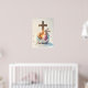Joyeux Pâques avec ce mignon lapin, oeufs de Pâques et une croix chrétienne pour la résurrection du christ jésus.