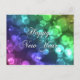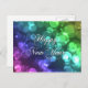 Cette carte est parfaite pour souhaiter une bonne année à vos amis et à votre famille ! Il présente un effet bokeh tendance arrière - plan avec un dégradé de rose, violet, bleu, vert et jaune. En plus de l'arrière - plan se trouvent les mots "Bonne année" dans un texte écrit par écrit.