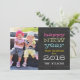 Carte de voeux de vacances de bonne année de tableau avec votre photo de famille préférée. ELKE CLARKE© disponible chez www.zazzle.com/monogramgallery. Envoyez vos salutations de nouvelles années à vos amis et famille utilisant cette carte de vacances d'amusement avec la photo. "Bonne année meilleurs voeux pour 2016" dans la typographie lunatique d'amusement. Vous pouvez "la customiser" et changer la couleur des mots pour assortir votre photo. Créez votre propre unique d'une carte aimable de vacances. Ajoutez votre propre photo, en saluant le message et le texte sur l'avant de la carte, telle que votre nom de famille, ou votre initiale de monogramme ou vos prénoms. Le choix est à vous à être créatif et pour faire lui tous vos propres. AJOUTEZ PLUS DE TEXTE ET DE PHOTOS AU DOS DE LA CARTE SI VOUS SOUHAITEZ. Remplacez la photo témoin par votre propre portrait de vacances de famille. Noircissez l'arrière - plan de tableau. Autre colore disponible.