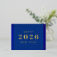 Carte postale Joyeuse du Nouvel An avec des couleurs bleues et un papier d'aluminium sur le devant. Idéal pour ceux qui cherchent des cartes postales à envoyer pour célébrer la nouvelle année. Belles couleurs bleues. Texte personnalisé sur le devant. Utilisez le modèle pour créer votre propre carte postale de vacances pour le Joyeux Nouvel An.
