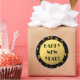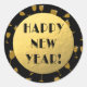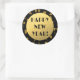 Bonne année ! Pile d'or et Sticker rond noir. Grands autocollants brillants pour cadeaux de Nouvel An, invitations, sacs à vin, quoi que vous décidiez de les utiliser !