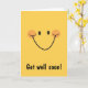 Une bonne carte de voeux avec un joyeux visage souriant sur un arrière - plan jaune. Texte personnalisable : Allez-y bientôt !