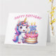 Bonne carte d'anniversaire 15e. Il a quinze ans aujourd'hui. Cute Unicorn aux couleurs rose et lilas. Un gâteau d'anniversaire coloré avec des bougies. Une adorable carte d’anniversaire pour enfant. Cette carte est vide à l'intérieur pour votre propre message. Également disponible en téléchargement numérique pour transfert vers d'autres produits.
