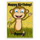 Un singe heureux compose cette carte d'anniversaire amusante. Personnalisable pour pouvoir ajouter votre propre texte et modifier la couleur de l'arrière - plan.