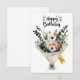 Envoyez des voeux d'anniversaire chaleureux avec cette carte de voeux élégante avec un bouquet de fleurs joyeuses attaché à la main. Le design présente un agencement moderne de marguerites, d'eucalyptus et de fleurs sauvages, jumelé à un message élégant "Joyeux anniversaire", parfait pour les amis, la famille ou toute personne qui aime les fleurs magnifiques.