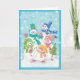 Les cinq bonhommes de neige habillés et souriants sur le devant de cette carte semblent très heureux... et pourquoi pas ? Ça approche Noël, et le ciel est rempli de flocons blancs ! Cette charmante image rétro est colorée, amusante et encadrée dans un joli turquoise. Les casquettes et les écharpes en bleu, vert, or et rouge égayent la scène, et un petit bonhomme de neige tient un petit arbre vert de vacances avec une étoile d'argent et un fond sucre de canne. Mignonne ! Le texte intérieur est entièrement personnalisable, de sorte que vous pouvez le personnaliser ou le faire dire ce que vous voulez.
