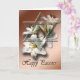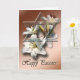 Carte florale simple mais élégante pour rester en contact avec la Pâque. Avec des lys et l'étoile de David sur un arrière - plan marron. Vous pouvez customiser le verset intérieur. © Marion Hedger
