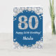 Bonne carte de Parties scintillant 80e anniversaire bleu et argent avec nom personnalisé. Pour plus de personnalisation, cliquez sur le bouton "Customiser" et utilisez notre outil de conception pour modifier ce modèle.