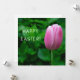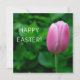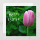 Bonne carte de voeux de Pâques avec un délicat tulip rose parmi un arrière - plan flou. La couleur est un beau rose pastel doux avec un peu de blanc aux bords pétales, et montre un plumage lisse du grain des pétales individuels. Parfait pour les amateurs de fleurs, surtout les tulipes de printemps à Pâques !