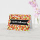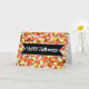 Bonne carte d'Halloween avec fantômes, bonbons de maïs et voeux heureux.