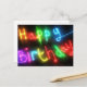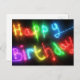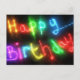 Colorée Bonne carte postale d'anniversaire en vert, rouge, jaune, turquoise, violet et bleu.