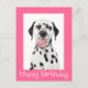 Aww...Qui peut résister au visage mignon d'un chiot dalmate ? Cette charmante carte postale de voeux d'anniversaire heureux présente le portrait d'un chien chiot dalmate heureux avec un arrière - plan blanc immaculé. Une frontière rose vif met en évidence un accueil heureux pour l'anniversaire. Les cartes postales d'anniversaire sont une alternative économique aux cartes de voeux lorsque vous voulez envoyer une note d'anniversaire rapide à des amis, à la famille ou aux clients. D'autres cartes d'anniversaire pour chien que vous aimerez... Tags : Dalmatien, Bonne carte d'anniversaire, Chien chiot dalmate, Chien chiot dalmate, Chien chiot dalmate, Chien, Chien, Chien, Chien, Carte d'anniversaire de chien, Carte d'anniversaire de chiot, Carte d'anniversaire de Dalmatie, Dalmatie, Chien de dala, Carte d'anniversaire de dalmation, Noir