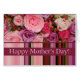Carte de Fête des Mères avec rose et rayures aux couleurs pastel. Disponible pour plusieurs relations familiales spécifiques et quelques langues non anglaises.