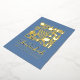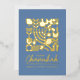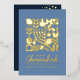 Happy Hanoukka / Chanukah Moderne Géométrique Vacances en Véritable huile d'or sur le Bleu. Menorah, Dreidel, Donuts, Stars & Huile d'olive... Ils sont tous ici. Symboles Hanoukka juifs + Espace pour ajouter votre texte personnalisé à l'avant et à l'arrière. Hébreu au verso dit "Chanukah Sameash" Heureux Hanoukka. Ce haut de gamme, beau, look, est une excellente façon de souhaiter à vos amis, famille, et clients, un Hanoukka / Chanukah très heureux. Si vous voulez voir une variation de cette conception s'il vous plaît nous envoyer un message ou email BestDressedBread@gmail.com.