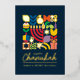 Joyeux Hanoukka / Chanukah moderne Géométrique vacances Salutations en Véritable huile d'or sur Dark Navy. Menorah, Dreidel, Donuts, Stars & Huile d'olive... Ils sont tous ici. Symboles Hanoukka juifs + Espace pour ajouter votre texte personnalisé à l'avant et à l'arrière. L'hébreu au verso dit, "Chanukah Sameach" — Heureux Hanoukka. Ce haut de gamme, beau, look, est une excellente façon de souhaiter à vos amis, famille, et clients, un Hanoukka / Chanukah très heureux. Si vous voulez voir une variation de cette conception s'il vous plaît nous envoyer un message ou email BestDressedBread@gmail.com.