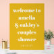 Accueillez vos invités avec style grâce à ce panneau de douche pour couples minimaliste. Avec son fond jaune moutarde gras et sa typographie sérif classique, ce panneau en acrylique crée une atmosphère chaleureuse et accueillante. Parfait pour les fêtes de fiançailles, les douches de mariage ou les célébrations d'anniversaire, il ajoute une touche moderne à la décoration de tout événement.