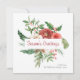 Carte de Noël de Bonnes Fêtes d'hiver. Cette belle carte de vacances carré présente d'élégantes fleurs rouges d'aquarelle avec baies sèches, pinecones et verdure sur arrière - plan blanc avec une "Bonnes Fêtes" dans un élégant script manuscrit | calligraphie. Le dos de la carte comprend un message pour la personnalisation. Trouvez les articles correspondants dans la collection de Noël botanique rouge hiver de vacances.