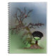 This is one of my moodier cartoons. Here’s a little green guy with big sad eyes and fluffy black hair, standing under a bonsai tree. Background in tones of blue and green. Original digital cartoon art by Taylor Addams.