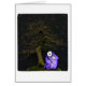 Créature pourpre de bande dessinée avec deux dents et oreilles pointues se reposant sous un arbre de bonsaïs une nuit étoilée. Art numérique original de bande dessinée par Taylor Addams.