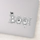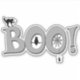 Boo! text design for Halloween with cat, spider, owl and spider net decoration