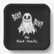 A cheerful ghost floats at the centre of this Halloween design, On either side, bold “BOO!” lettering adds festive flair in a fun, spooky style. The black background and white graphics create a crisp, high-contrast look that blends simplicity with seasonal charm.