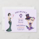 Modern and trending BOO BRUNCH Bridal Shower in Halloween themed colours purple and orange. Watercolor graphics include a skeleton skulls bride and groom taking a selfie! A bride-to-be with a gruelling glass of eyeball and wine, a bottle of love potion and on the reverse and spooktacular waiter ready to serve the bridal shower guests. Fun and bright for your bridal shower.
