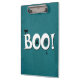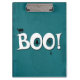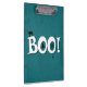 Boo! text design for Halloween with cat, spider, owl and spider net decoration on grunge blue background.