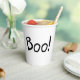 Boo funny cute simple handwritten typography Halloween party paper cups and party supplies. Check the rest of the collection for matching and coordinating items.