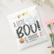Halloween theme favour bags for October birthdays feature "A Little Boo Is Turning...." typography with a cute watercolor ghost and jack o'lantern and handwriting script accents. The grey and orange colours are perfect for a girl or boy. Art by KL Stock.