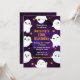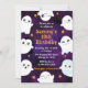 The bold purple backdrop paired with soft white ghost illustrations and warm orange accents captures classic Halloween charm while keeping the vibe lighthearted and kid-friendly. The cute expressions and whimsical styling make this design perfect for a fun-filled costume birthday celebration with a not-too-spooky twist.