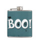 Boo! text design for Halloween with cat, spider, owl and spider net decoration on grunge blue background.