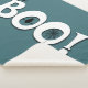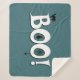 Boo! text design for Halloween with cat, spider, owl and spider net decoration on blue background.