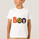 Cute and colourful Halloween T-shirts, tote bags, cards, stickers, mugs, and other Halloween apparel and gifts with a witch and frankenstein that reads BOO!