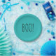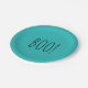 Boo black & teal minimalist simple spooky handwritten typography funny cute Halloween party paper plates.