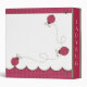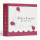 Our ladybug photo album has three ladybugs following dotted lines in swirls around the name of child on the front. The spine also has ladybug in the same font.