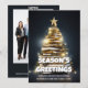 A modern and fun golden Christmas Tree with a golden star on top is made up of stacked books and is framed by a dark blue background that has large white templates near the base for your custom festive season greeings. The template currenlty reads "Season's Greetings" and has two additional templates beneath it for your message to customers and/or clients. The reverse side is the same dark blue on which templates for additional wording plus your company qr code or corporate logo appear. These are ideal for the festive holiday period from a writer, novelist, publisher, proofreader, historian or anyone whose profession involves books. Convey the spirit of the season to customers, friends and family with this plain but eye-catching design. Season's Greetings and Happy holidays!