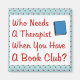Fun design for the book club member. Who needs a therapist when you have a book club? You don't when you have a good set of friends that listen to your problems. Great gift or prize for the book club member in your life.