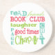 Fun colourful graphic design features words about a Book Club. Friends, page, chapter, laughter, chat, and good times. Makes a great gift for birthday, hostess or holiday.