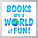 Promote the world of books and fun with this shiny blue design with a globe of the world. Great for a teacher or a librarian.