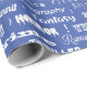 Fun blue gift wrap printed with different book genres including fiction, horror, fantasy, suspense, and biography.